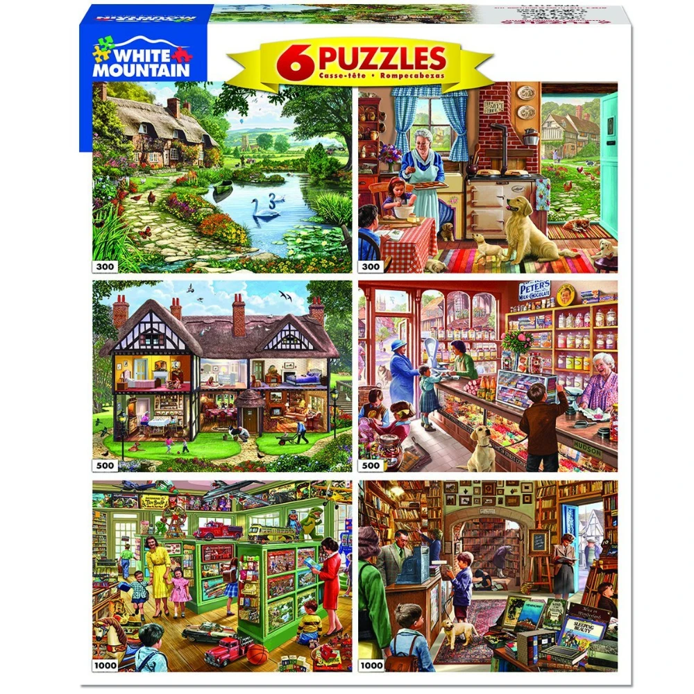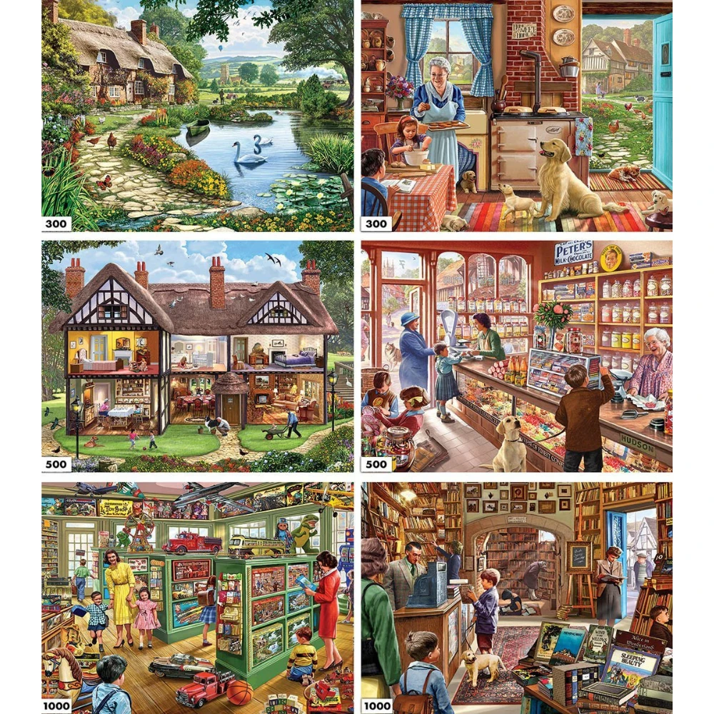 Englishman Steve Crisp’s artwork has caused a sensation here in Canada, sparking nostalgia for the simpler, less hectic ways of village life. Here’s a collection of Steve’s most popular puzzle images, featuring six puzzles of varying sizes and piece counts individually packaged in one box.