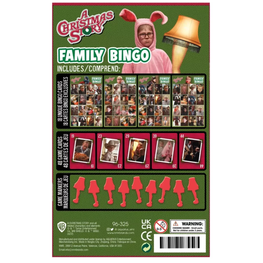 This A Christmas Story Family Bingo game is a hilarious way to commemorate the classic movie—and have a lot of laughs with friends and family while doing it. This Christmas bingo set includes 42 calling cards, 150 bingo chips, and 18 unique bingo cards featuring your favourite movie characters including Ralphie, the Old Man and more!