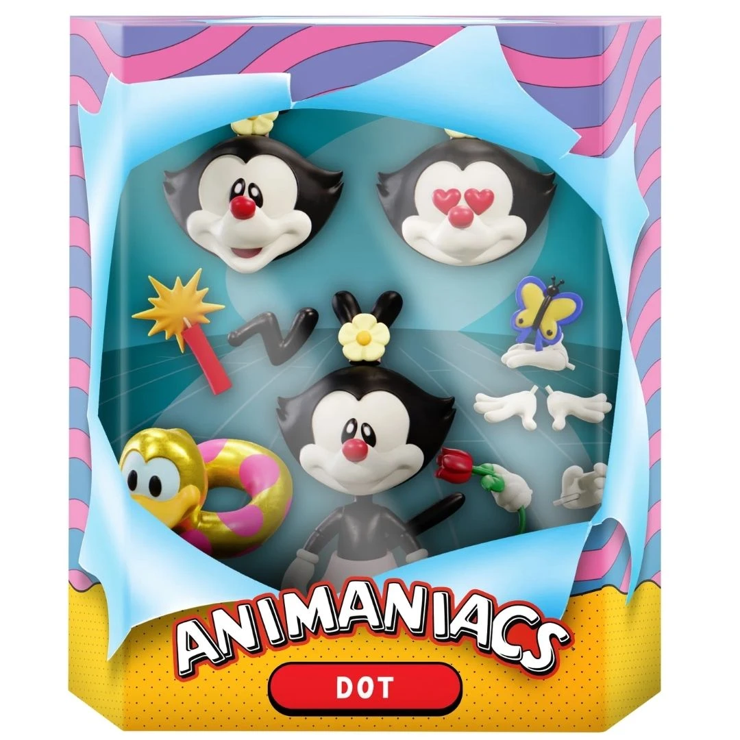 This 7” scale highly-articulated Animaniacs ULTIMATES! figure of Dot features premium detail and comes with interchangeable heads & hands, and a variety of other accessories from some of her most memorable episodes and gags. She’s the cutest character on the show (and ya best not forget it, Bub!) so what’s not to love? Now’s time to boingy, Boingy, BOINGY your way over to get your DOT Ultimates figure!