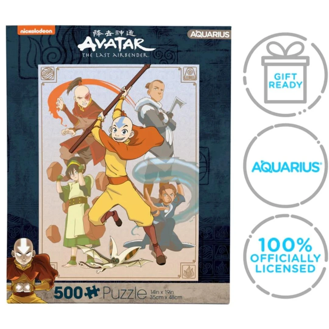 Enjoy piecing together this colorful 500 piece puzzle featuring the cast of Avatar: The Last Airbender.