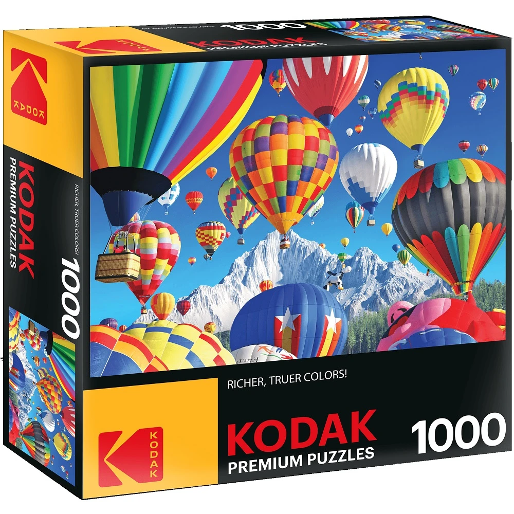 Go Up Up and Away when you piece together this vivid Kodak jigsaw puzzle featuring a bevvy of balloons against a mountain backdrop. 1000 pieces.