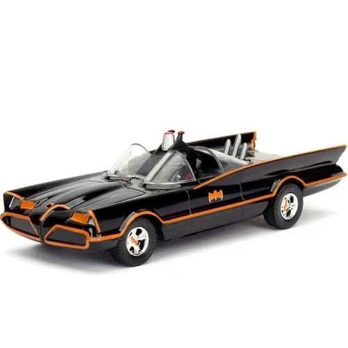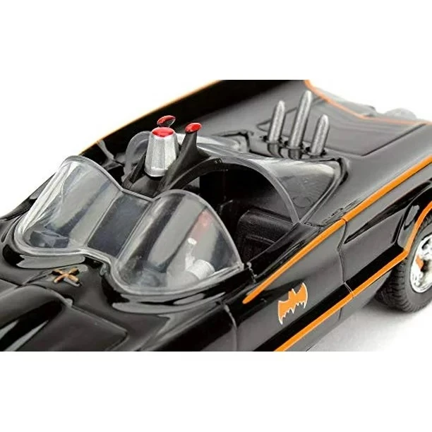 Unleash the dynamic duo of nostalgia and playfulness with the 1966 Batmobile diecast car, a 1:32 scale gem from Jada Toys that brings the iconic crime-fighting ride to your collection in all its retro glory. This miniature Batmobile isn’t just a car; it’s a compact crusader, ready to race through your imagination and save the day with a dash of vintage Bat-style!
