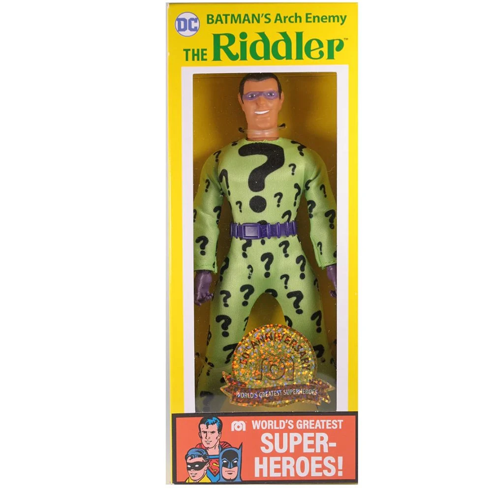 The 50th Anniversary World’s Greatest Super-Heroes Riddler comes with that same iconic 1970’s styling that we all grew up with and love, now paired with Mego’s new super-poseable body featuring 26 points of articulation. This replica of the World’s Greatest Super-Heroes Riddler comes in a classically styled window box that features the original WGSH artwork and original item number. Don’t miss out on Edward E. Nygma! Collect them all – the 50th Anniversary World’s Greatest Super-Heroes by Mego!