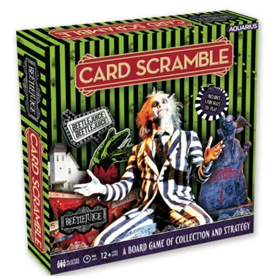 In our Beetlejuice Card Scramble Board Game, collect and match cards and out strategize your opponents. Gather your wits to avoid the Sandworms as you all journey across this Beetlejuice themed game board. Who will be the first to get through the nightmarish landscape as your dodge the ever pesky bio-exorcist?