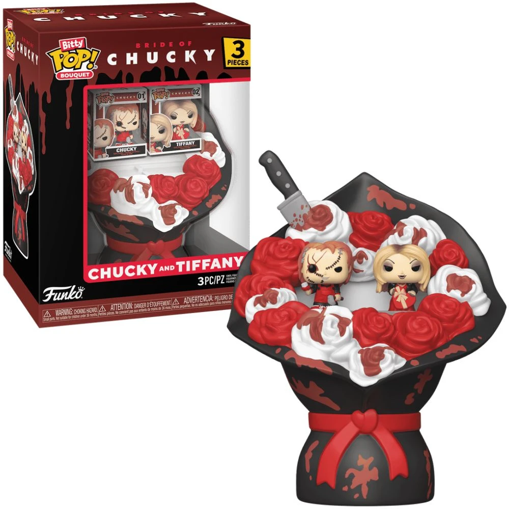 The world of POP! is getting bigger—and smaller—with Bitty POP! collectibles! Expand your Bride of Chucky collection with this Bitty POP! Bouquet, featuring Bitty POP! Chucky and Bitty POP! Tiffany in a chilling Valentine’s Day motif. The Bitty POP! Bouquet can display two Bitty POP! figures—mix and match with more of your favorite Bitty POP! characters for endless combinations!