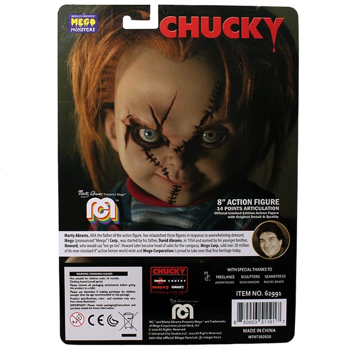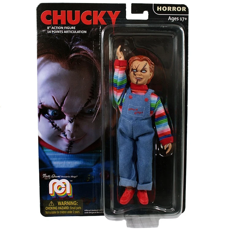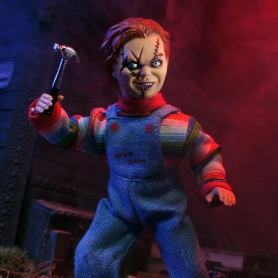 Now Mego has captured Chucky’s likeness in the form of an 8″ scale retro action figure. His real clothes include the trademark striped sweater, denim overalls and scarred face. The results are highly realistic and nostalgic!