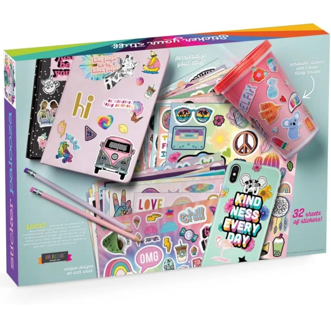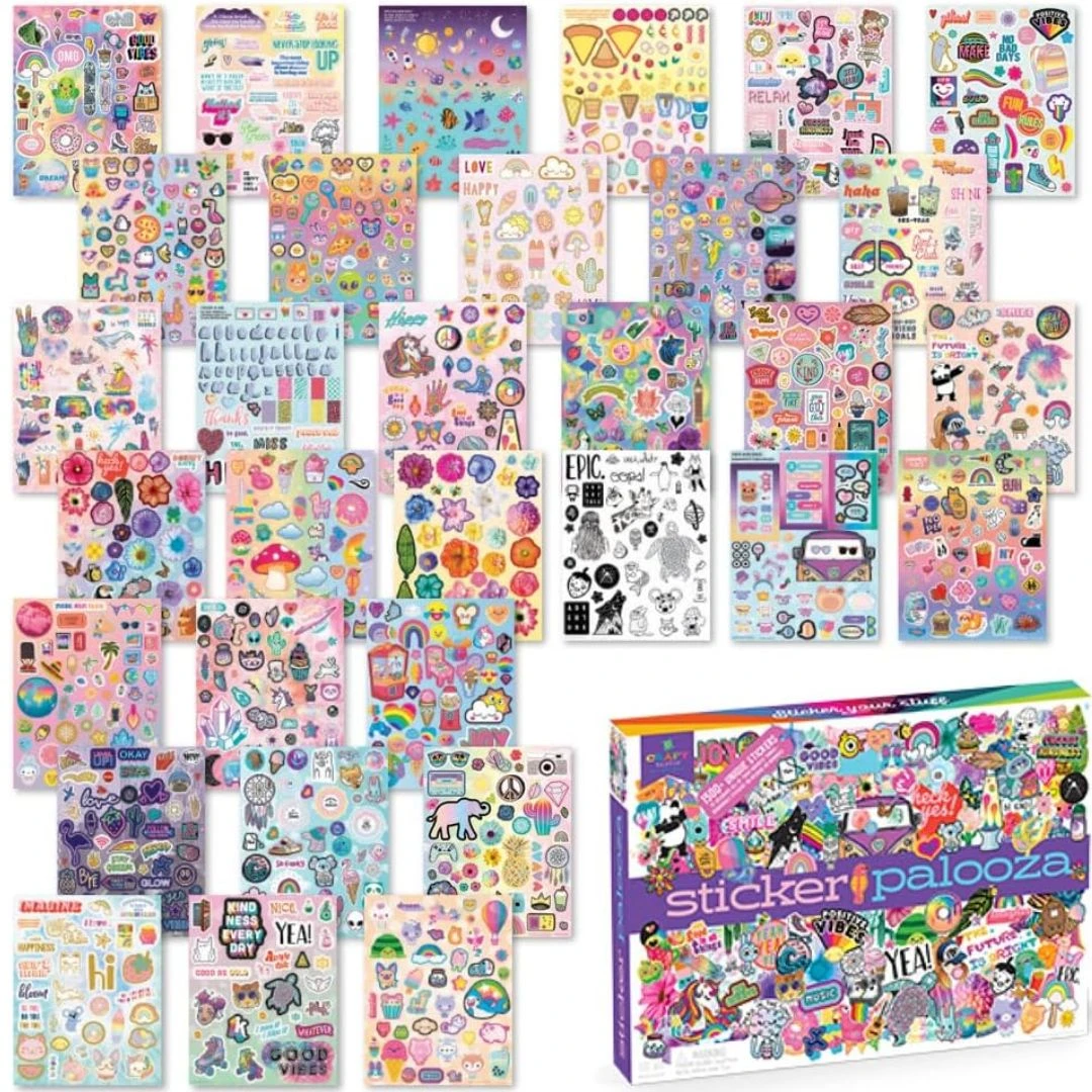 These thick, high-quality stickers are mom-approved because they stick great but are removable with no sticky mess left behind – yay! Personalize your notebook, phone case, instrument case, water bottle, or anything else you can think of with over 1500 fun stickers. All your favourite themes are here like cute animals, adorable aliens, tasty good, rainbow and much more.