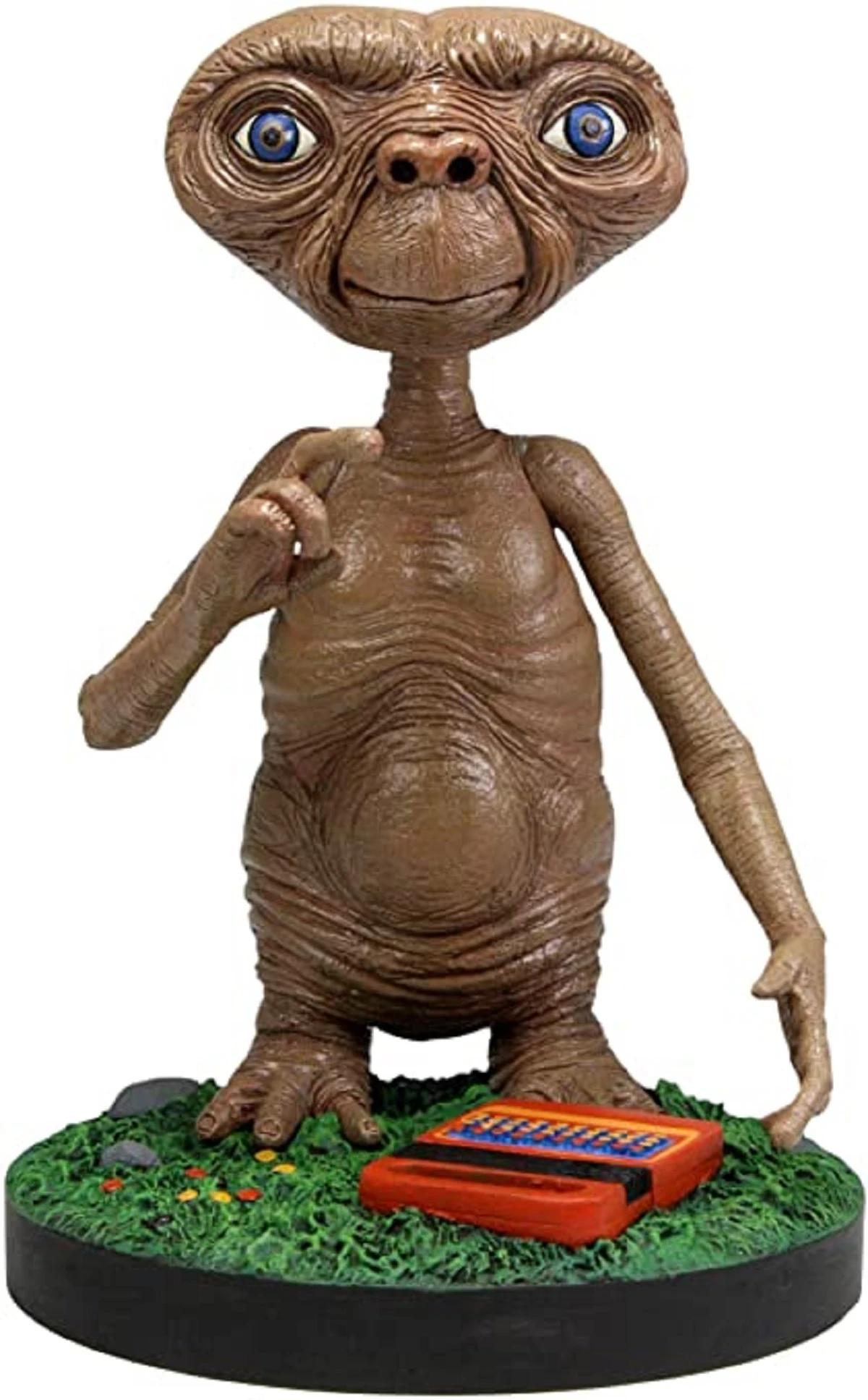 From the beloved classic movie E.T. The Extra-Terrestrial, this E.T. Head Knocker stands nearly 7” tall with bobbling head. The friendly little alien is cast in resin and then hand painted for out-of-this-world detail, down to the themed base. Comes in a collectible matte finish package with spot gloss details.