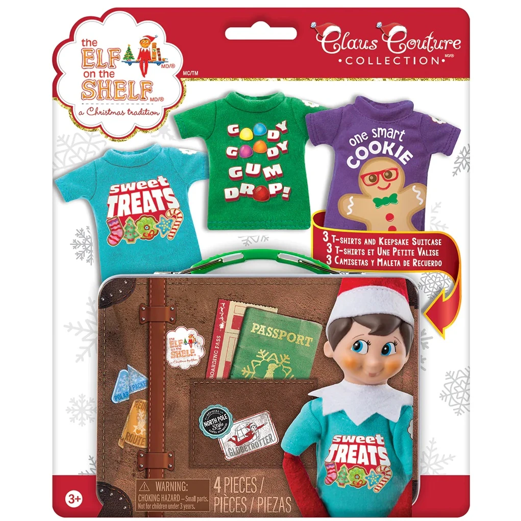 Scout Elves showcase their sweet tooth in these sugary elf-sized t-shirts. The trio of shirts comes with a Trunk for an elf’s travel or storage needs.