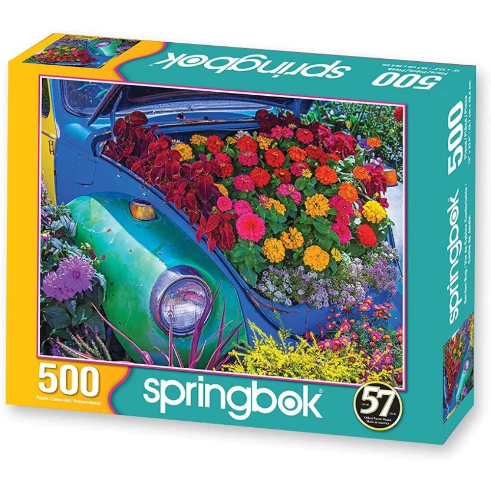 Uplift your spirits with the Garden Bug puzzle! In this 500 piece delight, zinnias bloom from their unique planter – a VW bug! Bright hues and bunches of florals such as dahlias and coleus create easy-to-sort colours and textures.
