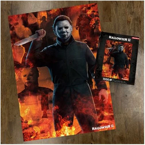 It takes a tad of courage to assemble a puzzle like this, but we think you will stand the test. The Halloween 2 Fire 1,000-Piece Puzzle may be intimidating, but if you paused on this item, it just might be for you or someone you know. Your pal Michael Myers is featured front and center in the image on this 38-inch tall x 20-inch wide puzzle. Well… Ages 14 and up