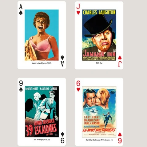 - Each card features a different scene from one of Hitchcock’s films