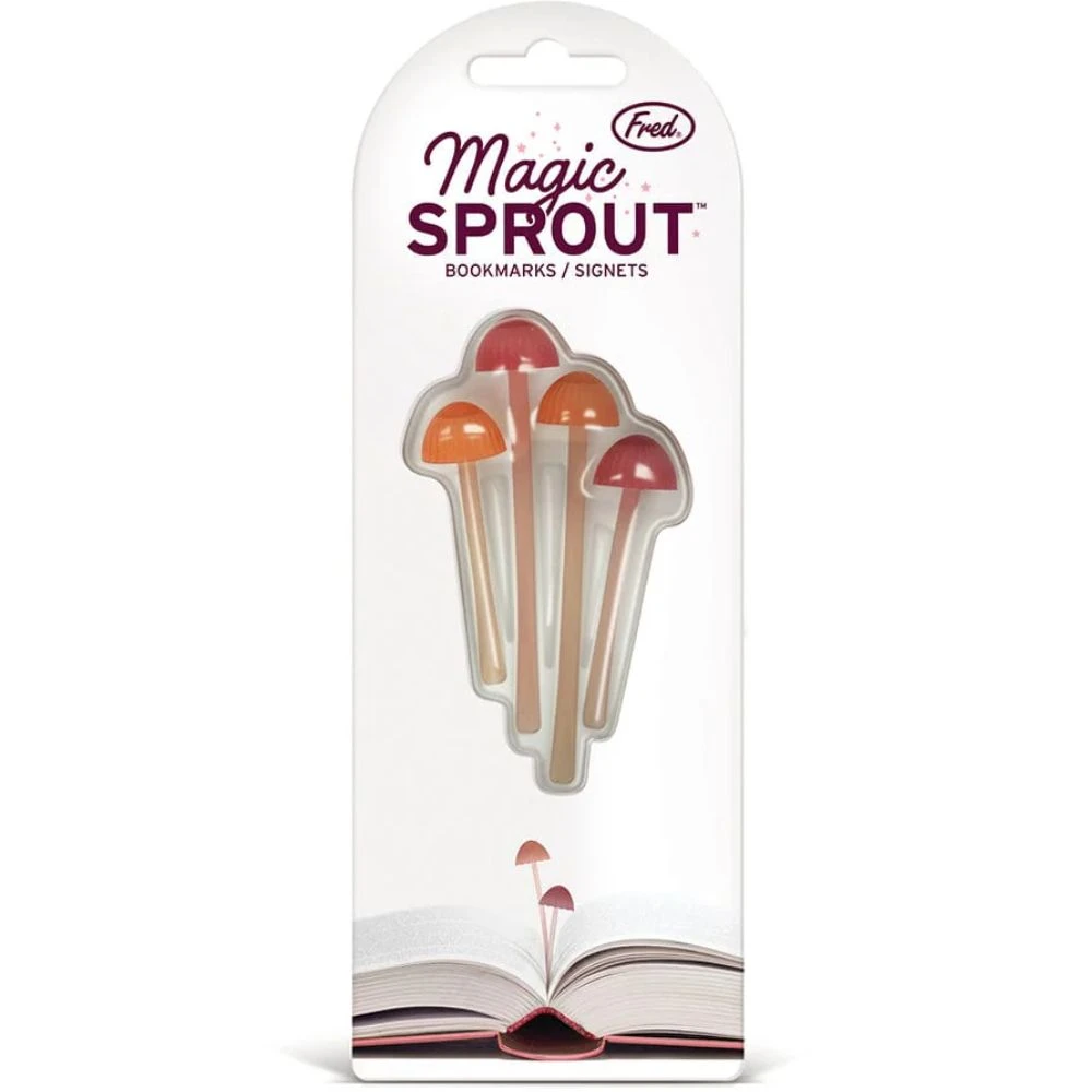 No need to go foraging for the last page you read – these mini-mushroom bookmarks easily sprout where you left off! Magic Sprouts are made of soft, flexible silicone and includes four bookmarks in two shades and lengths, measuring 2″ and 3″.