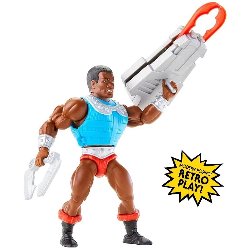 MOTU Origins Deluxe Clamp Champ has all the retro styling you remember from childhood, but now comes with two accessories including his large Power Pincer and a mini clamp. Plus – interchangeable head and hands are also included. The throwback card features original-style artwork of Clamp Champ vs Ninjor.
