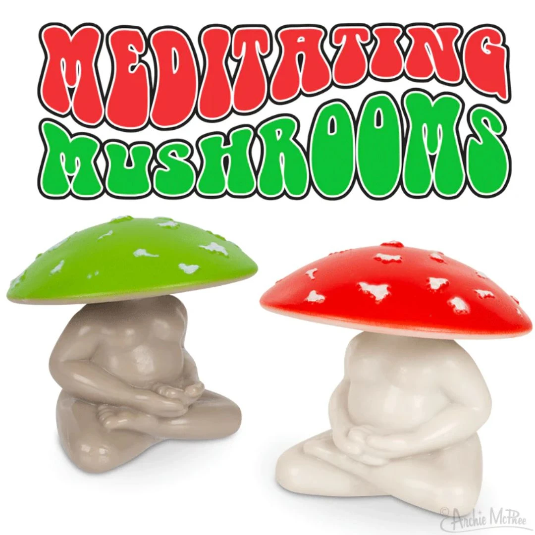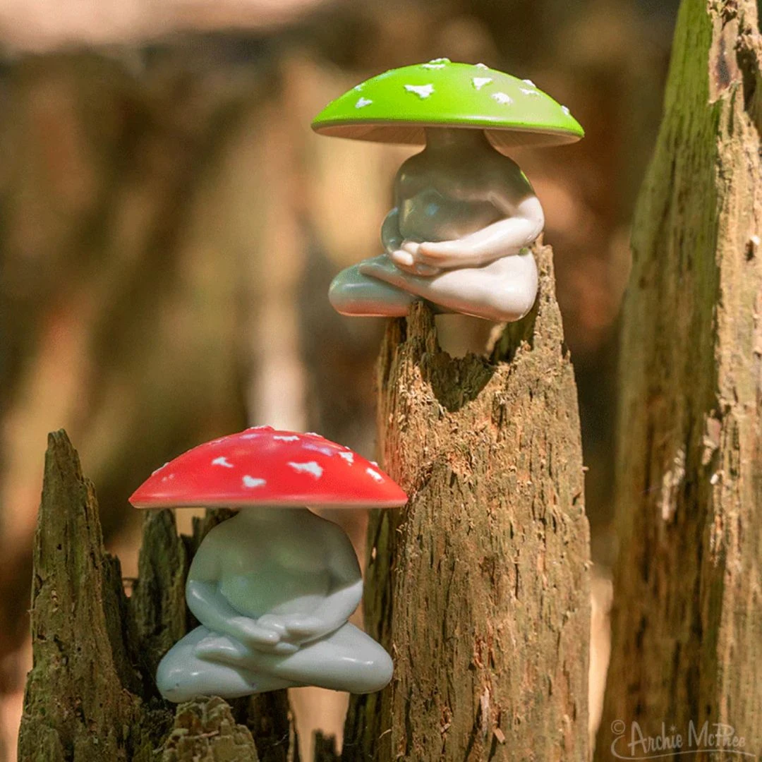 Meditating Mushrooms are for goblincore fanatics! When you see mushrooms in the forest sitting in a ring, it might be that they’re just on a fungus-friendly meditation retreat. They use their mindfulness to open the door to the (mush)room of their minds, man. These 2-1/8″ soft vinyl collectible figures come in one of two different shades. We recommend getting at least one of each.