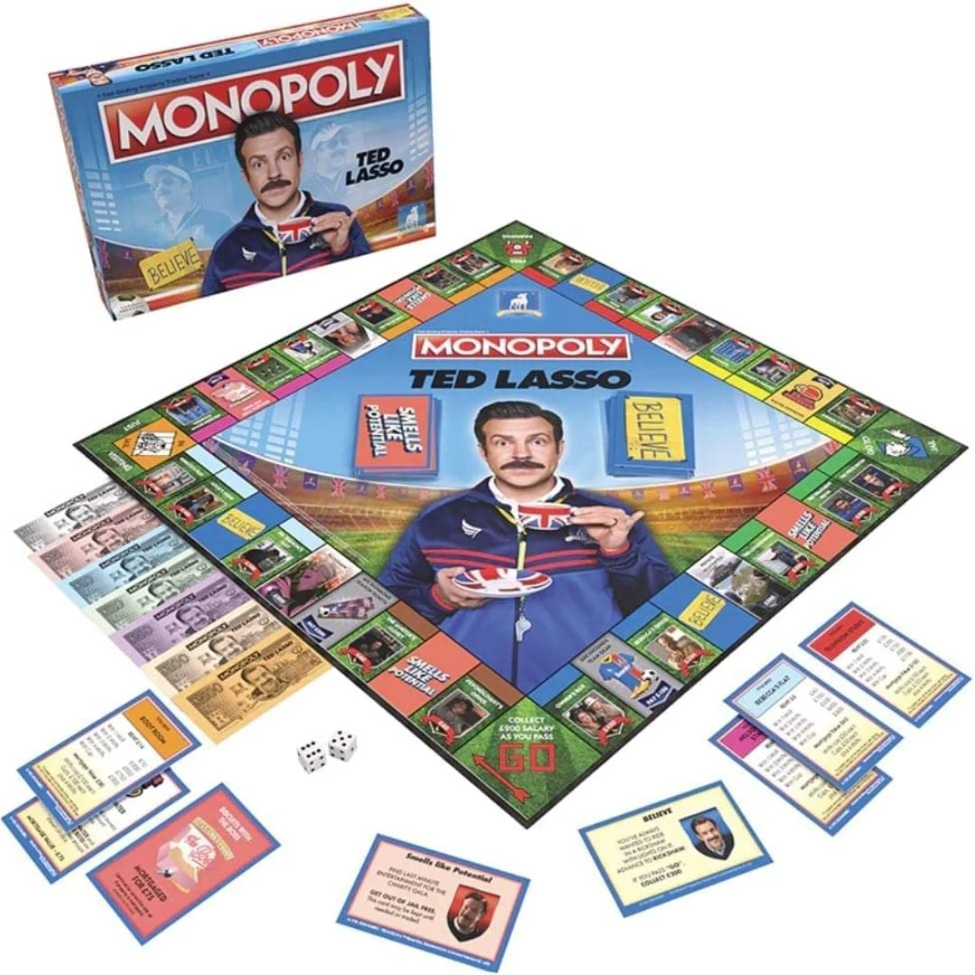 Inspire from the sidelines to the tabletop with this ultimate game for Ted Lasso fans! MONOPOLY: Ted Lasso celebrates the Emmy Award winning comedy series as players buy, sell, and trade properties to spread Positivity among key characters. Choose from tokens representing memorable symbols from the show such as Ted’s visor or a goldfish to travel Nelson Road, and strengthen bonds by setting up Hope and Optimism. Be the last player standing with valuable Positivity to win!
