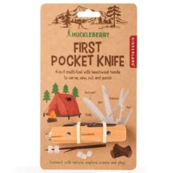 My First Pocket Knife is a fully functioning 4-in-1 multi-tool with a beechwood handle to carve, saw, cut and punch. It’s packed with everything you need for the outdoors. Includes saw, knife, scissors, and awl.