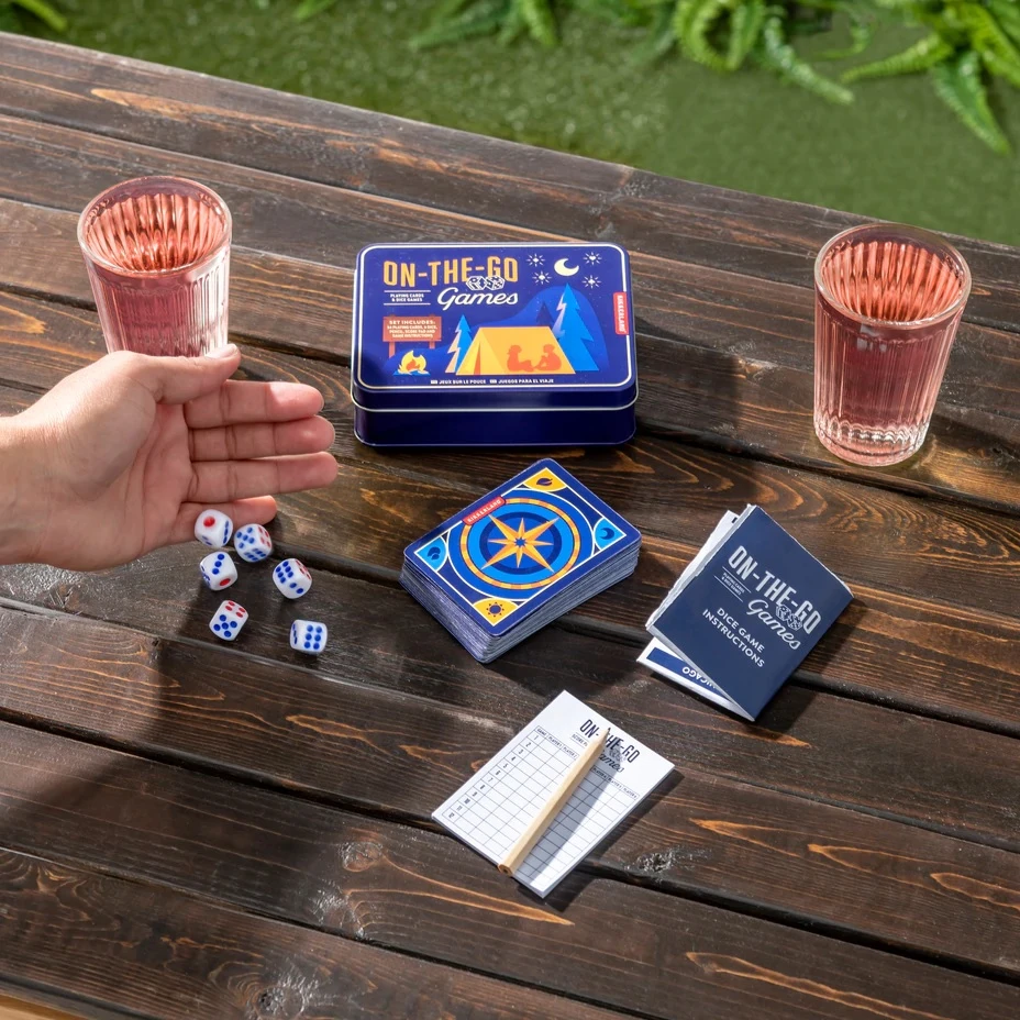 Outdoor adventurers and camping enthusiasts will appreciate our On-the-Go Games Kit. It packs a lot of fun into a little tin box. Perfect for game nights at camp, or for rainy day activities on the go.