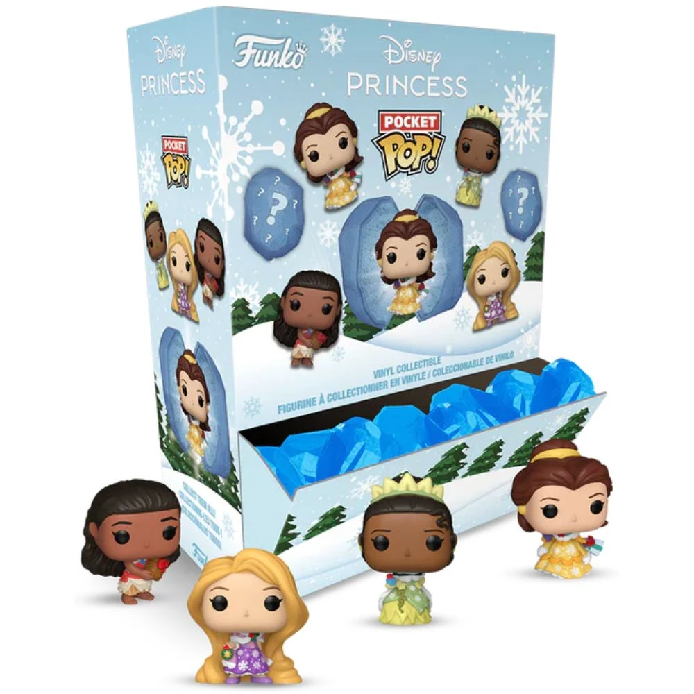 Celebrate the season with Disney Princess Pocket Pop! Ice figures. These mystery vinyl minis come in ice-shaped packaging and includes one figure of either Moana, Belle, Tiana, or Rapunzel. Each is about 1.5″ tall, sold blind so you won’t know which you get until you open it.