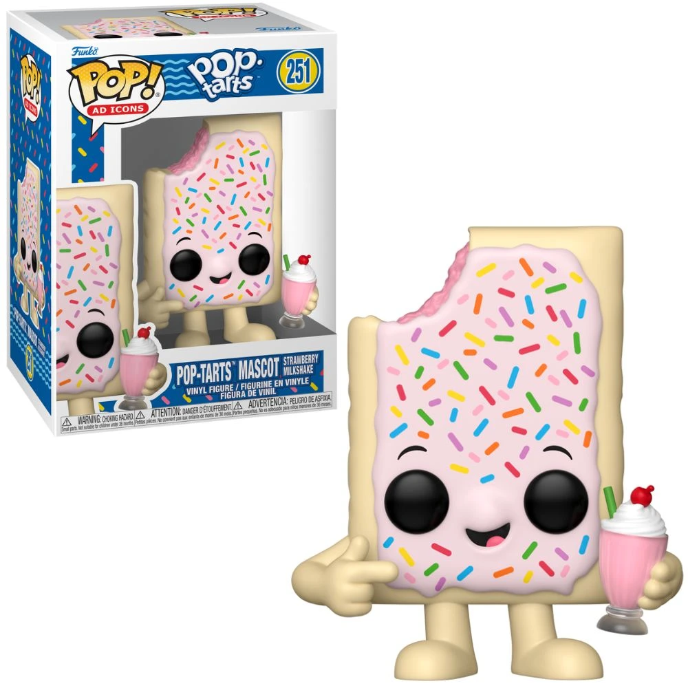 Serve up nostalgia with this adorable strawberry milkshake‑themed Pop‑Tarts mascot! Standing around 3.8–4″ tall, the vibrant vinyl figure features the pink-frosted pastry mascot holding a strawberry shake—making it a standout piece from Funko’s Ad Icons series celebrating classic breakfast brands