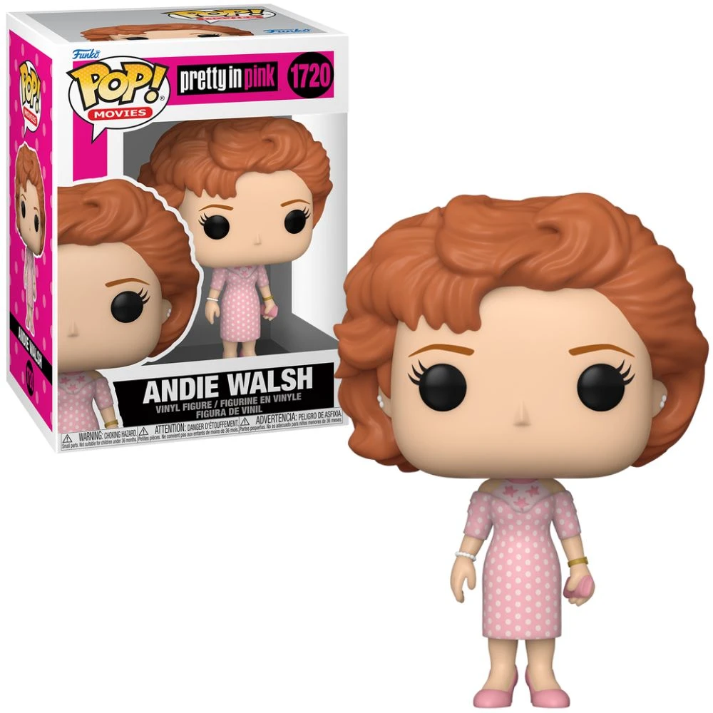 The Funko Pop! Movies: Pretty In Pink – Andie Walsh figure features the iconic character from the 1986 film Pretty In Pink. Standing approximately 4.2 inches tall, this vinyl collectible depicts Andie in her signature pink dress, capturing the essence of her character’s unique style.