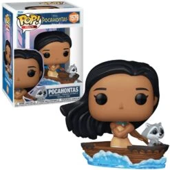 The Funko Pop! Plus: Pocahontas in Canoe with Meeko (#1579) commemorates the 30th anniversary of Disney’s Pocahontas (1995). This collectible captures the iconic “Just Around the Riverbend” scene, featuring Pocahontas paddling her canoe with her raccoon companion, Meeko, perched at the front.