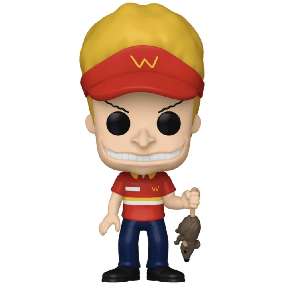 The Pop! TV: Beavis & Butt-Head – Burger World Beavis figure shows Beavis in his fast food uniform from Burger World, alongside Butt-Head. With his characteristic wide-eyed expression and enthusiasm, this figure captures Beavis’s quirky and often overzealous personality at his least competent job. A fun addition for fans of the Beavis and Butt-Head series.