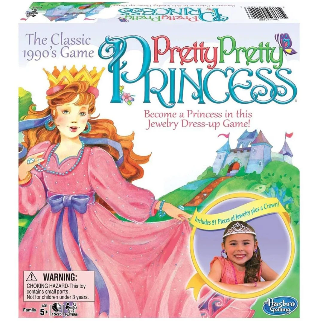 A classic game from the 1990’s! Play dress-up with your friends as you race to gather your set of fancy jewelry. Collect your own matching color necklace, bracelet, ring and earrings. When you have all of your jewelry plus the crown, you win the game! Then you’ll be as pretty as a princess – the Pretty Pretty Princess!
