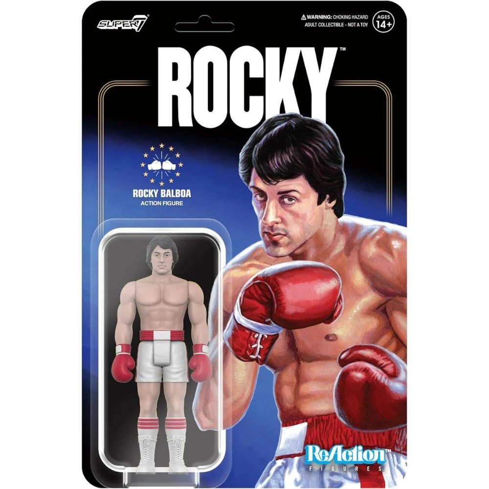 Step into the ring with the Reaction Rocky I Rocky Boxing figure! This retro-style action figure captures Rocky Balboa in his iconic boxing gear from the original Rocky movie. With its detailed design and classic packaging, this figure is a must-have for fans of the legendary boxing film series. Recreate your favorite scenes from the movie or display it proudly in your collection. Get ready to go the distance with Rocky Balboa!