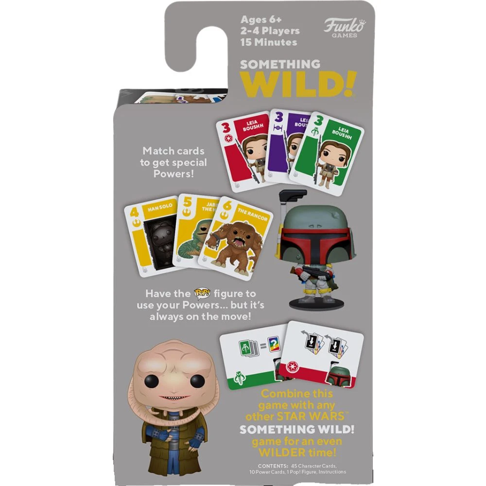 Something Wild! Star Wars: The Boba Fett is a fast-paced, light card game for the whole family! Featuring a collectible Pocket Pop! Boba Fett figure, as well as your favourite characters from the world of Star Wars. Power Cards add a fun twist to this new-classic, set-making card game. Combine multiple games to add more character cards, more Pop! figures, and more powers to your game!