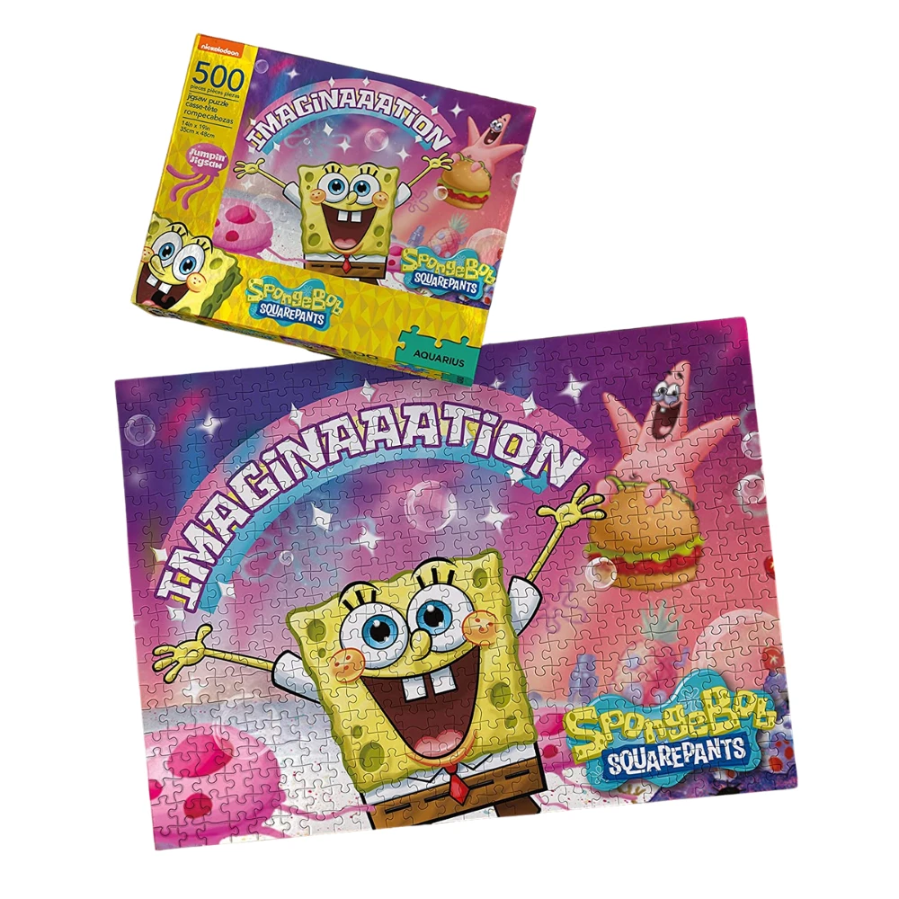 Dive into Bikini Bottom with this SpongeBob imagination puzzle! This colourful puzzle by AQUARIUS features SpongeBob’s iconic “Imaginaaation” rainbow moment from the season 3 episode “Idiot Box”. With 500 pieces, this fun puzzle is bigger, squarier, spongier with an underwater scene that includes Patrick, Spongebob’s pineapple house, and a pink jellyfish.
