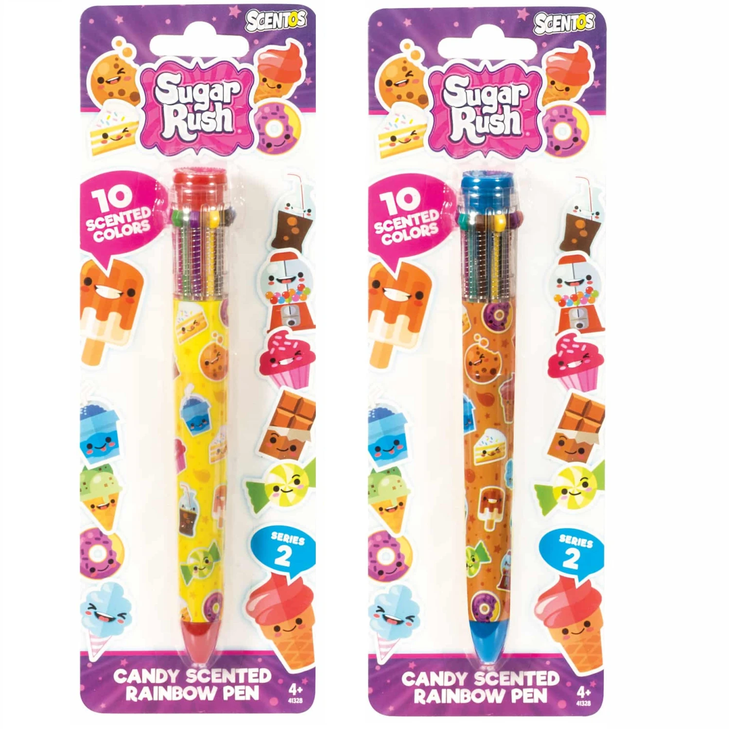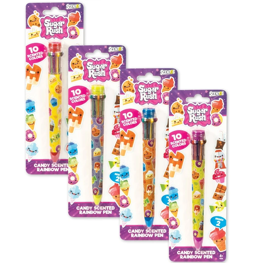 Sugar Rush is an expansive line of candy-scented stationery products scented to sweet perfection. Each Rainbow Pen includes 10 candy scented colours such as Bubblegum, Cherry Pop, Berry Ice, Creamsicle, Chocolate Chip, Ice Cream Cake and Strawberry Shortcake.