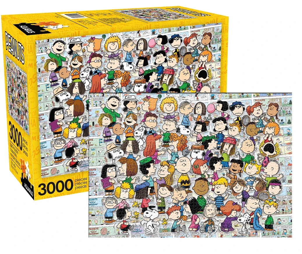 Good grief! The whole Peanuts gang is here in a massive 3,000 piece puzzle! Put together this jigsaw to say HI to Charlie Brown and friends. Their images overlay a classic comic strip background.