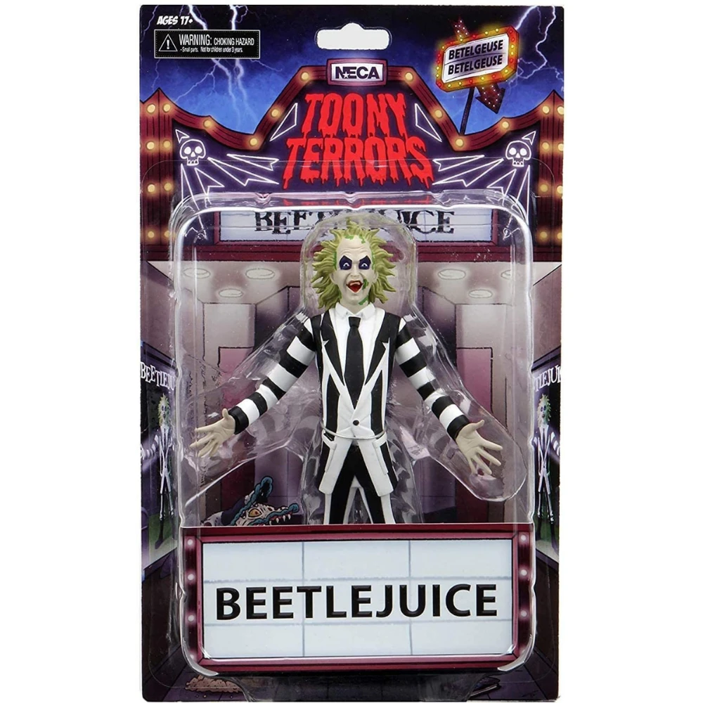 Measuring approximately 6 ” tall, the Beetlejuice (Beetlejuice) action figure, comes in a blister pack with a die-cut backdrop.