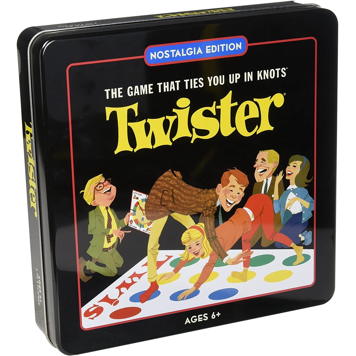 Liven up any party by inviting your guests to play this twister classic board game with nostalgic tin case. As part of the nostalgia line of products, this game board features a classic yet timeless design and graphics that were inspired by the 1966 edition. The twister and spinner have a vintage look and feel that helps players reminisce their happy childhood memories. This board game is packaged in a stylish collectors tin. It comes with a built-in storage to help you organize the components. Thanks to the twister classic board game with nostalgic tin case, your house parties will always be exciting